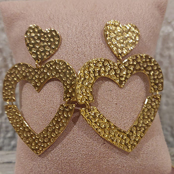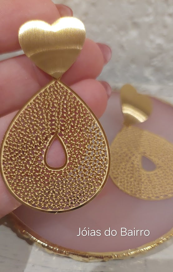 Brincos Corações Dourados Com Perolas