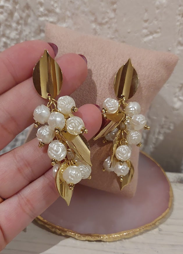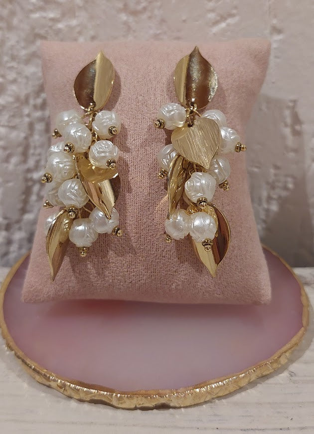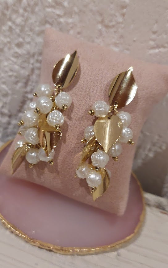 Brincos corações dourados com perolas – Super leves medem 6,5cm